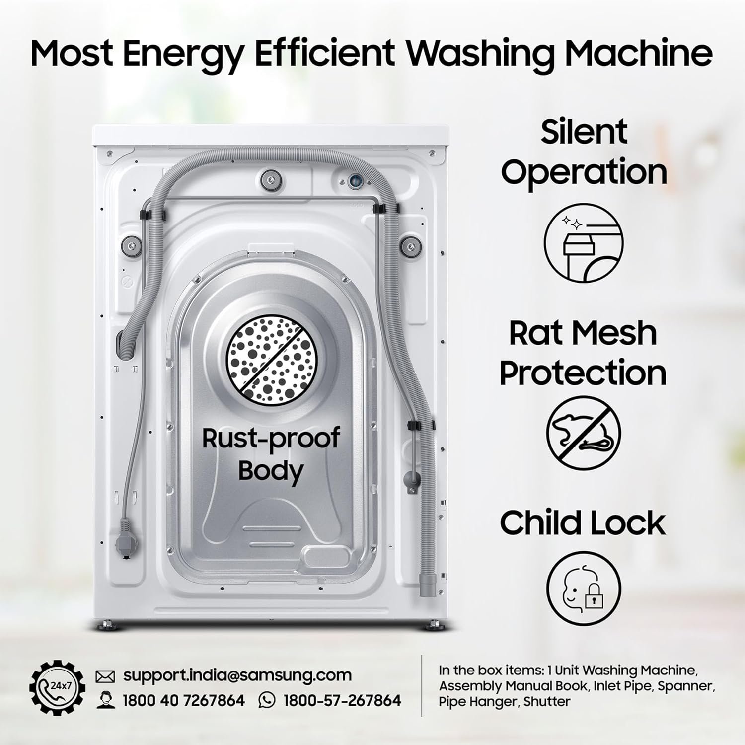 Samsung 8 kg, 5 Star, Digital Inverter, Motor, Fully-Automatic Front Load Washing Machine (WW80T4040CE1TL, Hygiene Steam, White)
