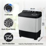 Capacity 8 kg: Suitable for large families | Water Pressure: (0.05~0.3MPa)(0.5~3.0kg.f/cm²) | Water Consumption : Refer to BEE label