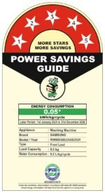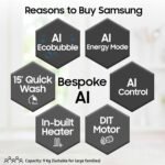 Key Performance Features: AI Ecobubble with 45% better fabric care| AI Energy Mode for up to 70% energy savings | AI Control | Wi-Fi Embedded – Operate remotely| Smartthings for home integration| Hygiene Steam| Super Speed – Wash is just 39 minutes | SpaceMax – Creates more space inside to incorporate a larger drum| Quick Wash| Bubble Soak| Drum Clean+ Removes dirt and 99.9% of odor-causing bacteria| Pre Wash| In-built Heater for Hot & Cold wash