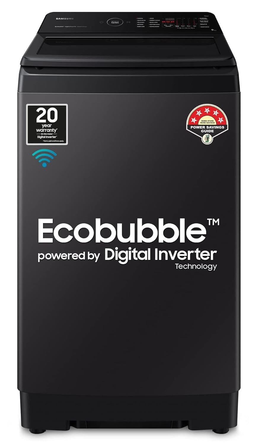 Samsung 9 kg, 5 star, Eco Bubble Technology with Super Speed, Wi-Fi, Digital Inverter Motor, Dual Storm, Fully-Automatic Top Load Washing Machine Appliance (WA90BG4546BVTL, Black Caviar)