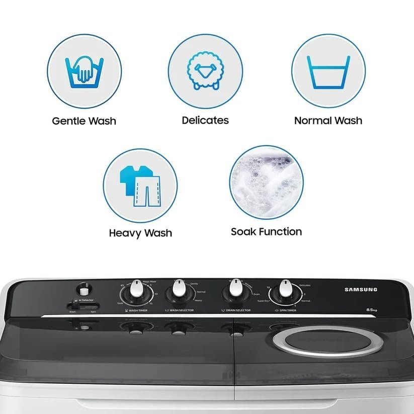 Be the first to review “Samsung 9 kg, 5 star, Semi-Automatic Top Load Washing Machine (WT90C4260GG/TL, Air Turbo Drying, Light Gray,)” Cancel reply