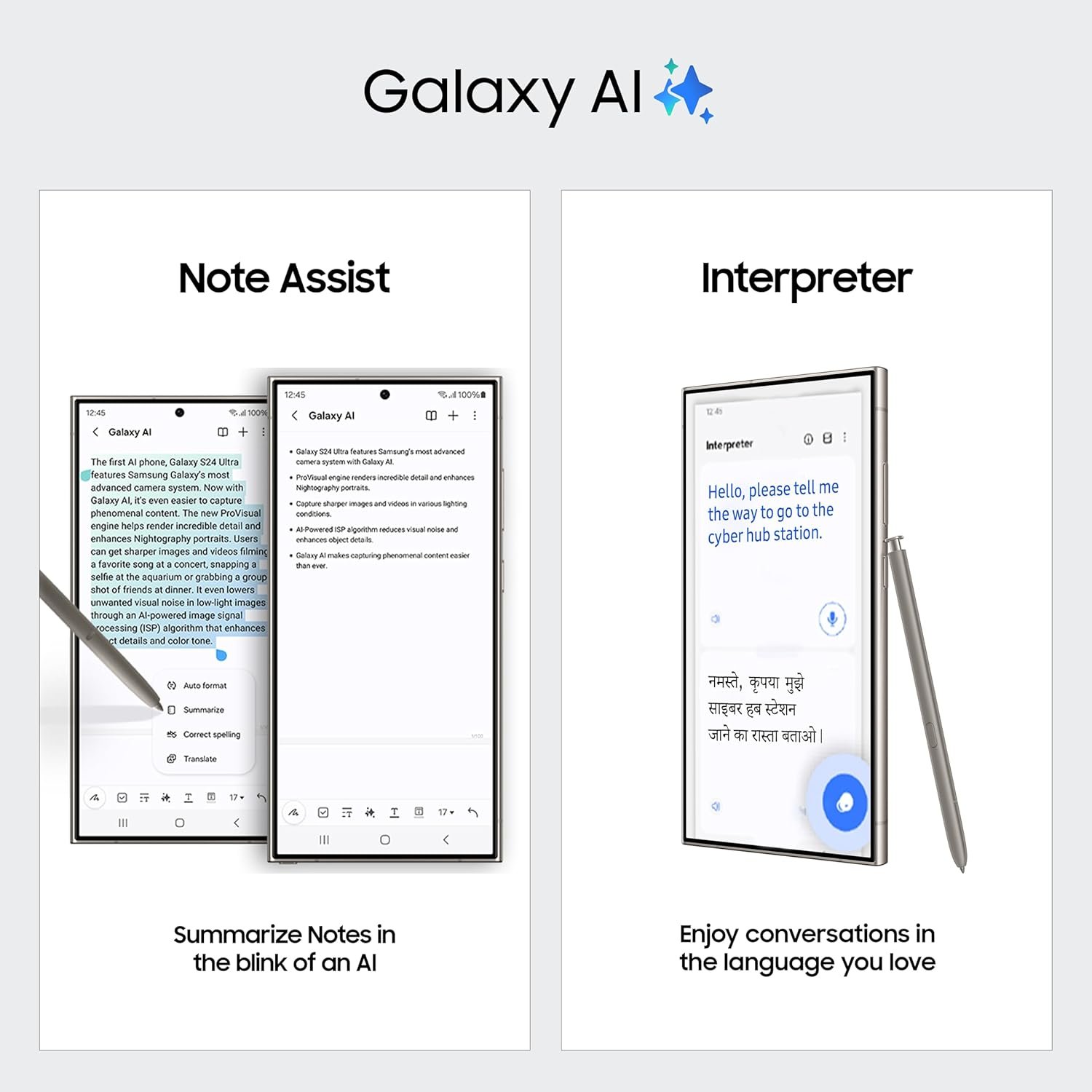 Galaxy AI – Welcome to the era of mobile AI. With Galaxy S24 Ultra and One UI in your hands, you can unleash completely new levels of creativity, productivity and possibility.