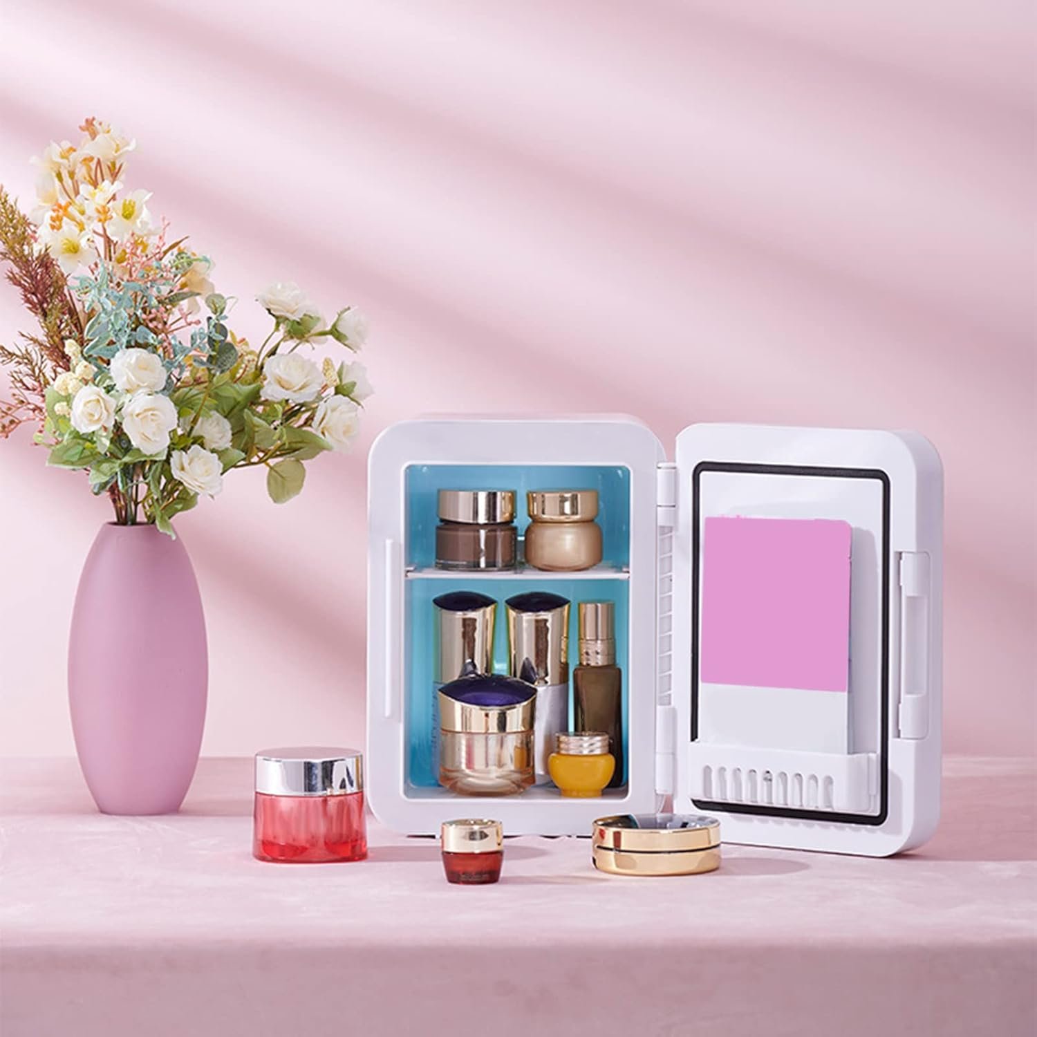 SAZ DEKOR® 5L Portable White Mini Car Fridge Makeup Mirrored Refrigerator 12V Us Plug