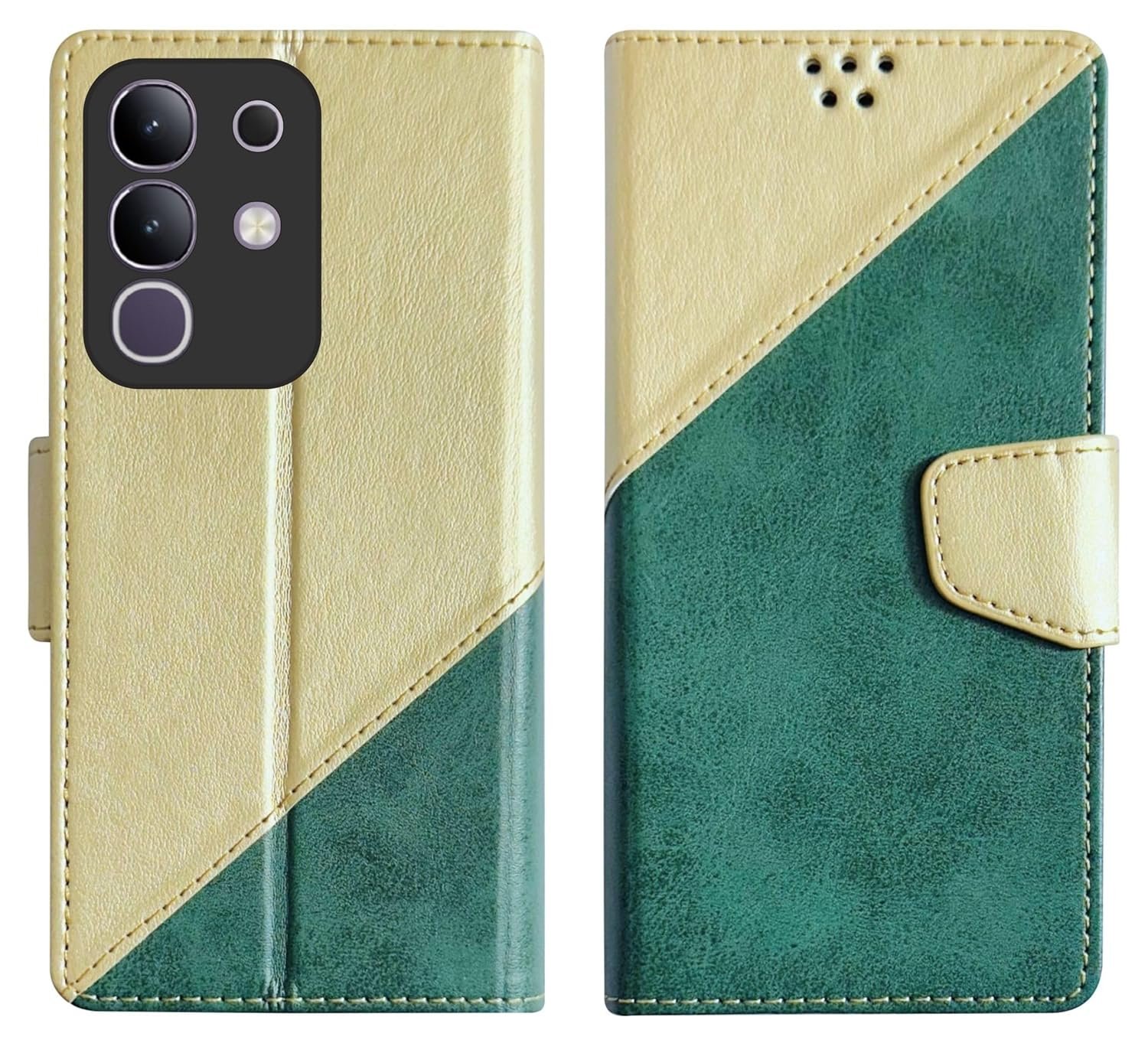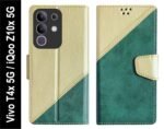SBMS Flip Cover for Vivo T4x 5G / iQoo Z10x 5G Back Cover Case with Magnatic Closure | Inbuilt Stand | Card & Money Pocket (MultiGreen)