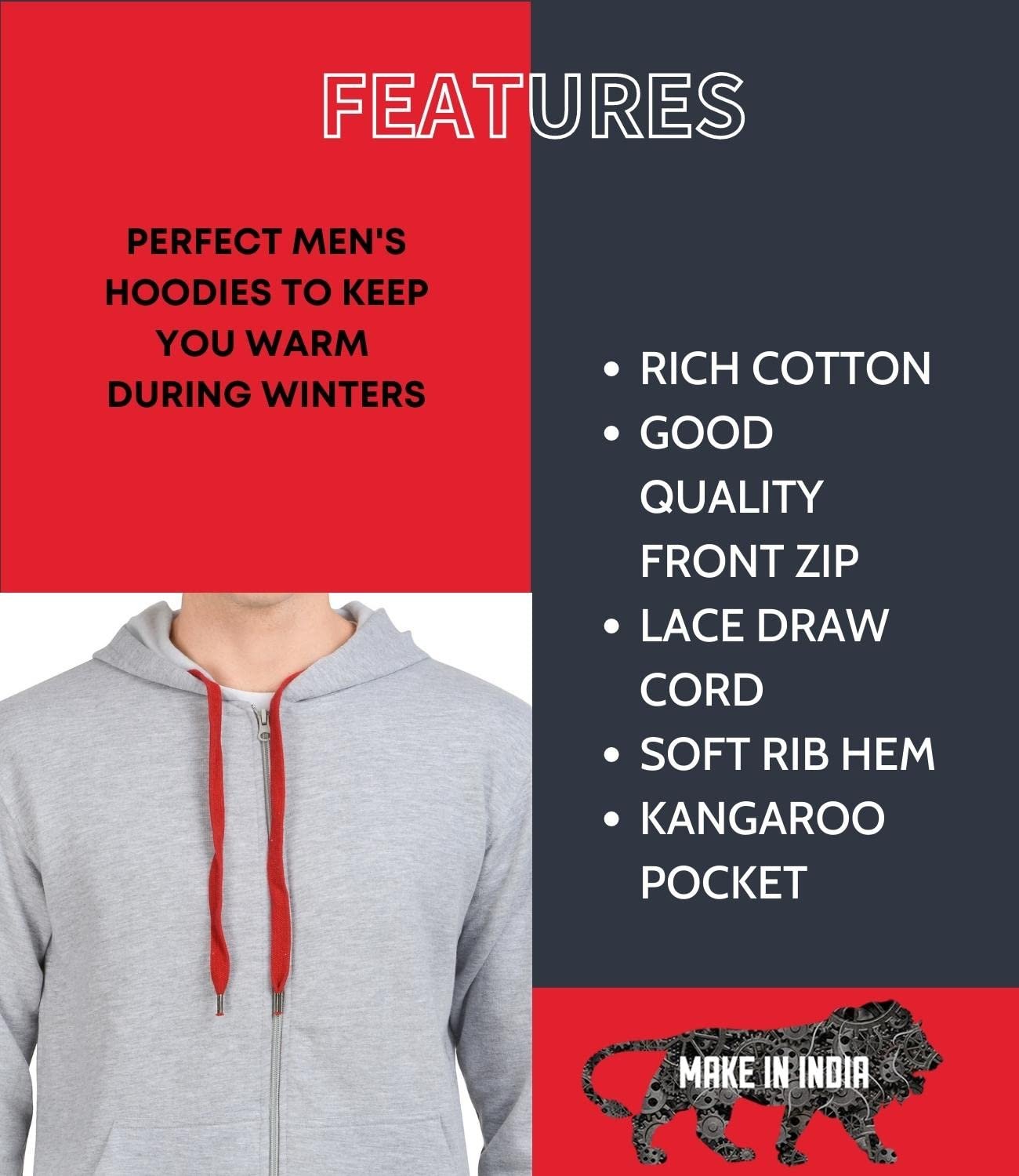 Scott International Men’s Solid Cotton Hoodies for Men Sweatshirt for Men Gym Warm Travel Hoodies for Men Pullover Hoodies for Boys Stylish Winter Wear with Hood and Pockets Zipper Hoodie Grey