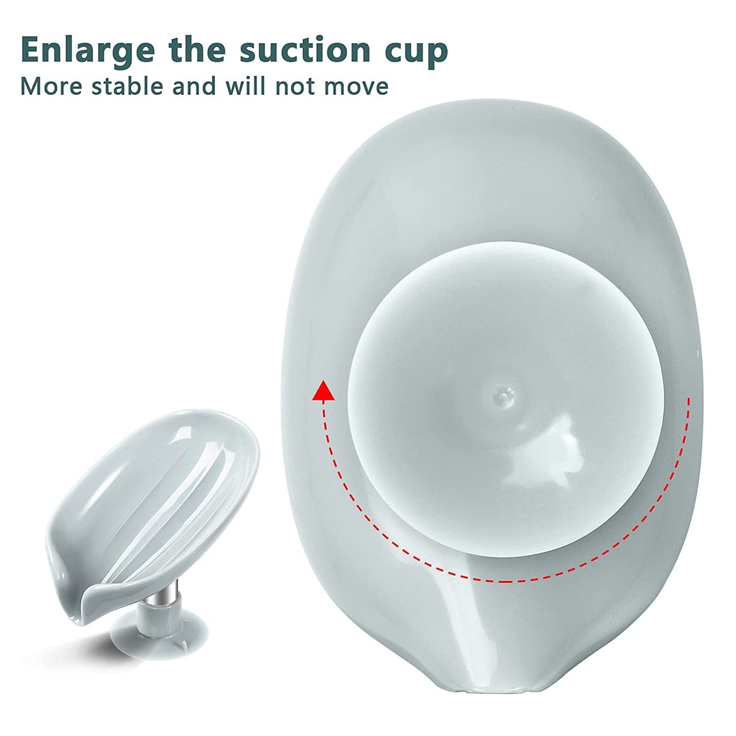 【STRONG ADHESION SUCTION CUPS】This self-draining soap holder has a removable silicone suction cup at the bottom of the tray, you don’t need to punch holes. Please clean the suction cup before use, leaving a little water drop on the bottom, so that the suction cup will have a strong stickiness and can keep the soap the stability of the box.