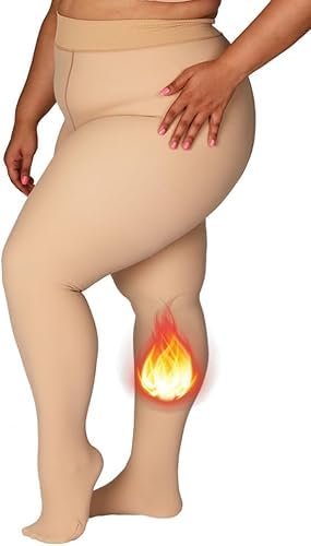 SHAPERX Fleece Lined Tights Women High Waisted Winter Warm Womens Thick Tights Thermal Fake Translucent Pantyhose Plus Size Pack of 1