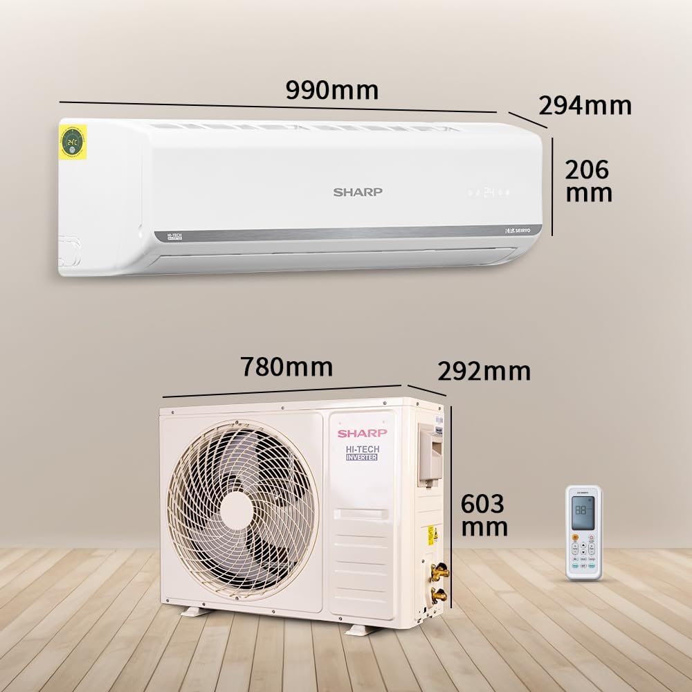SHARP 1.5 Ton 3 Star Inverter Split AC (5 years free comprehensive Warranty, Copper, 5in1 Convertible, Turbo Cool Technology, AntiCorrosive Gold Fin, 2025 Model, AHSI18V3BGC, White)