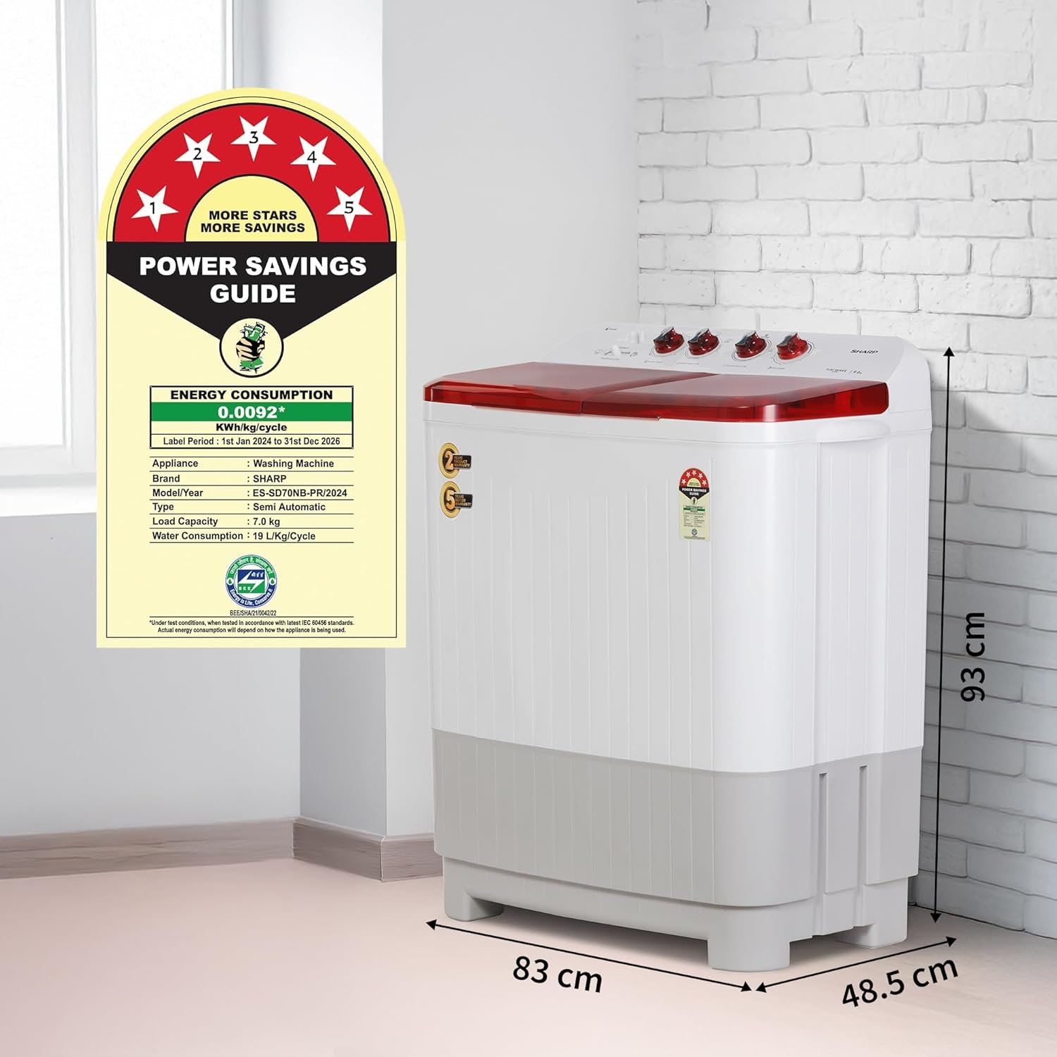 ENERGY RATING : 5 Star – Best in class efficiency.