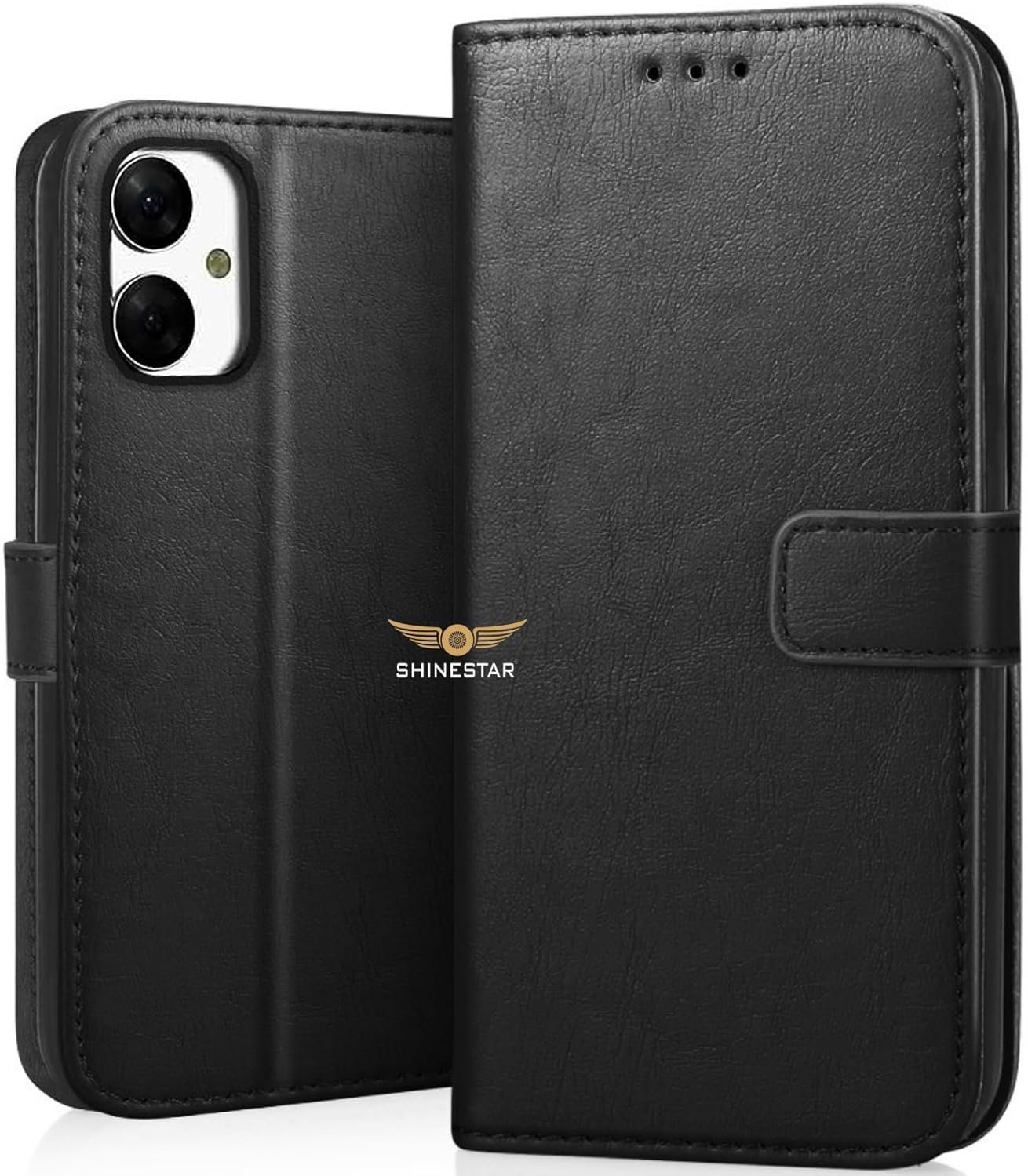 SHINESTAR Flip Cover for Samsung Galaxy M05 / A05 / F05 | PU Leather Wallet Case with Card Slot, Kickstand, Magnetic Closure & Shockproof TPU Shell – Classy Black