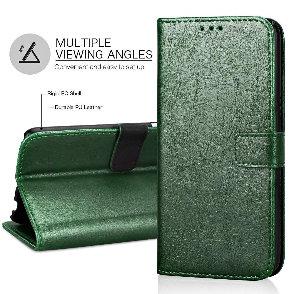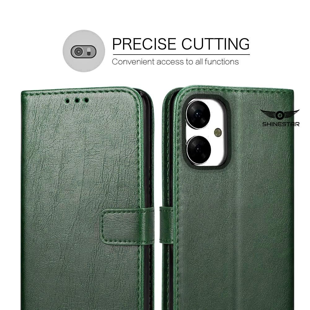 SHINESTAR Flip Cover for Samsung Galaxy M05 / A05 / F05 | PU Leather Wallet Case with Card Slot, Kickstand, Magnetic Closure & Shockproof TPU Shell – Unique Green