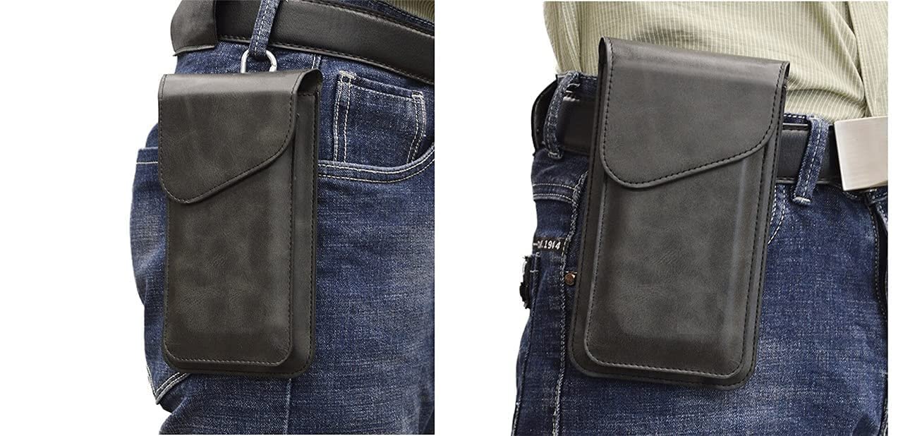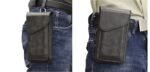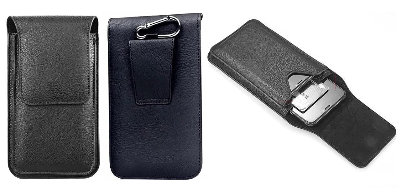 SkyTree Genuine Leather Double Mobile Pouch Belt Clip Cases Bag Pack for Samsung Galaxy M05 – Black (2 Pocket for 6.5 inch and 5.5 inch)