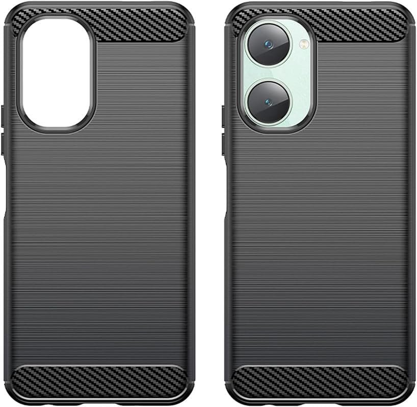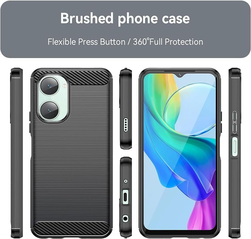 SmartLike Shock-Absorption Carbon Fiber Flexible TPU Rubber Soft Silicon Full Body Protective Cover for Vivo Y03 / iQOO Z9 Lite 5G – Black
