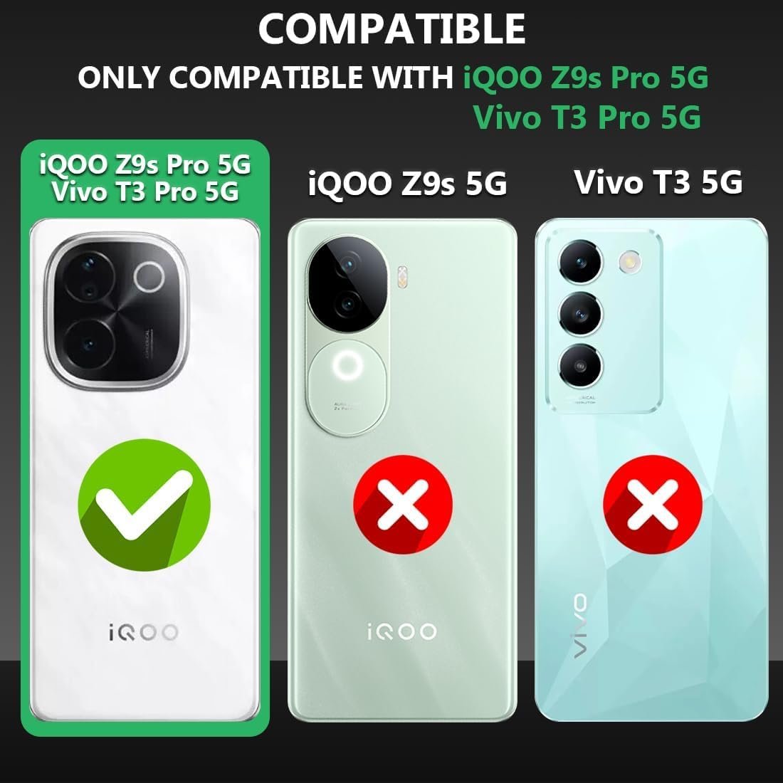 This Cover Only fit for IQOO Z9s Pro 5G AND Vivo T3 PRO 5G ,This NOT FIT FOR Vivo T3 5G, Vivo T3 lite 5G, Vivo T2 Pro 5G, AND IQOO Z9s 5G .Please check your mobile model in your mobile setting in about Mobile , than compare with product titile with images for Correct fit with Protection & easy access to all buttons , Designed to fit the contour precisely – Made of good material and extremely easy to fit and remove -Protection against dust, dirt, bumps & scratches – Easy access to all controls & buttons. Hard Back quality material, protects your mobile from bumps, damages and cracks.