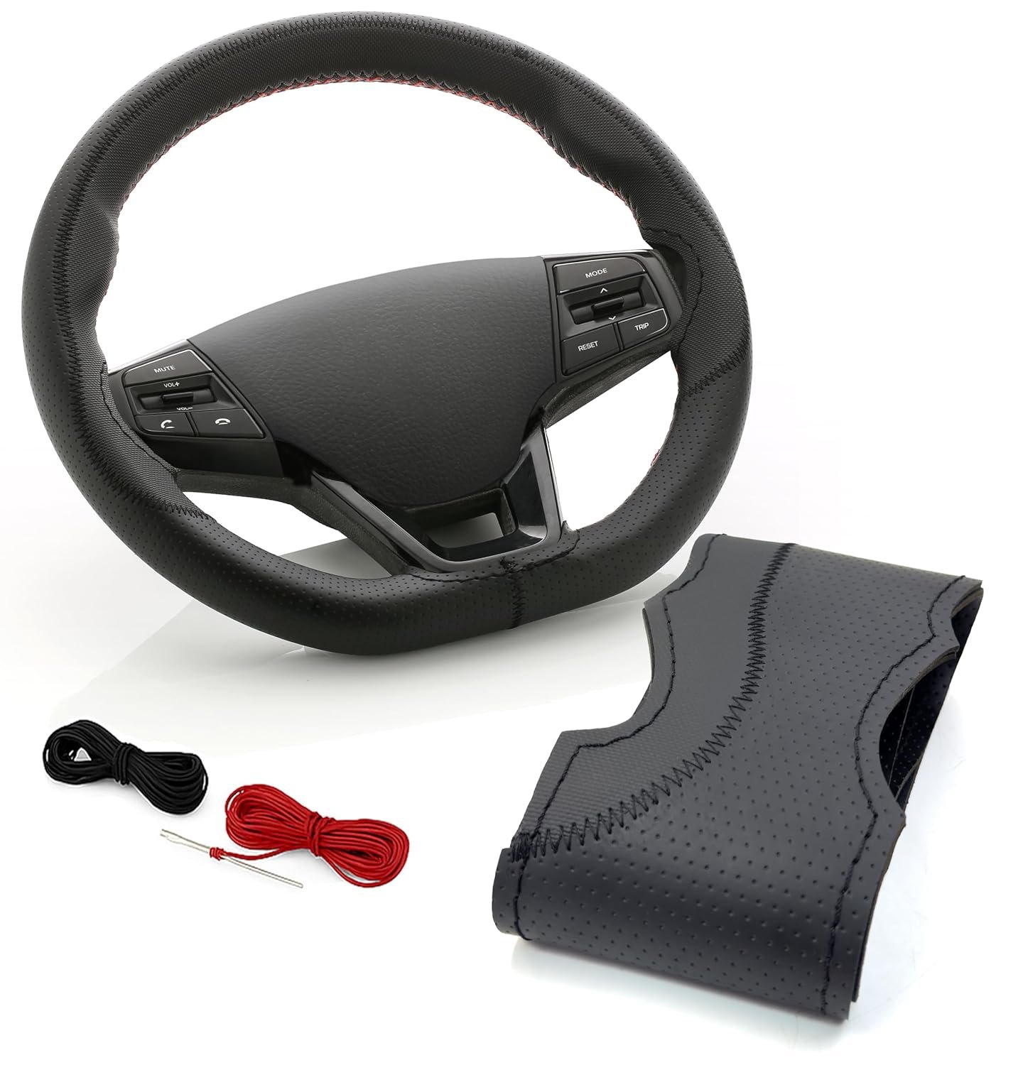 SOFT X Stitching Type Steering Wheel Cover Faux Leather, Sewable, Breathable & Anti-Slip with Sewing Needle & Threads- Premium Handmade Fit Suitable for Tata Nexon 2024+, Black
