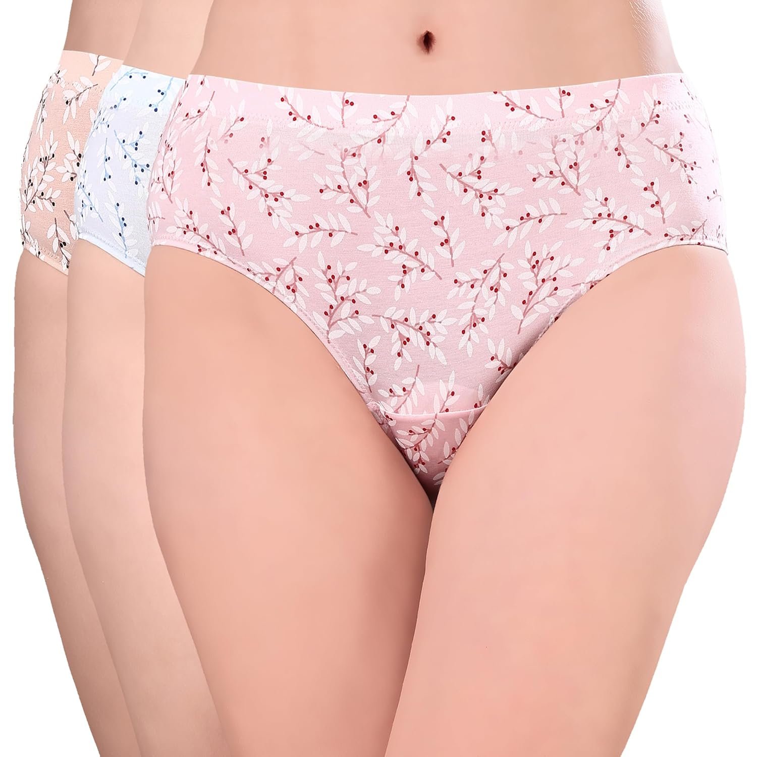 SOIE Women High Rise Full Coverage Printed Stretch Cotton Hipster Panty (Assorted Pack of 3)