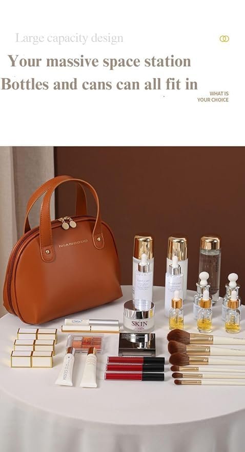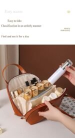 ♥ Embrace the ultimate convenience of this elegant travel organiser that keeps your cosmetics and toiletries neatly arranged while on the go. Crafted with premium materials, this portable case features multiple compartments to store your skincare essentials, makeup, and grooming accessories.