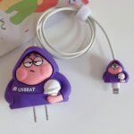 Soomio 3D Cartoon Case for iPhone Charger 18W/20W Only, Soft Silicone Protective Case Cover for Apple 20W & 18W iPhone USB-C Power Adapter Charger and for USB Lightning Cable (Unbeat Purple)