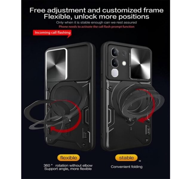 SPAZY CASE® Vivo T4x 5G / iQOO Z10x 5G Back Case | Hybrid Case with 360 Degree Rotating Finger Ring Holder + Slider Shutter Camera Protection Case for Vivo T4x 5G / iQOO Z10x 5G – Blue