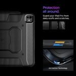 Spigen Rugged Armor Pro for iPad Pro 13inch M4 (2024) Full Cover Folio Case with Built in Pencil Holder, Trifold Stand, Auto Sleep/Wake – Black