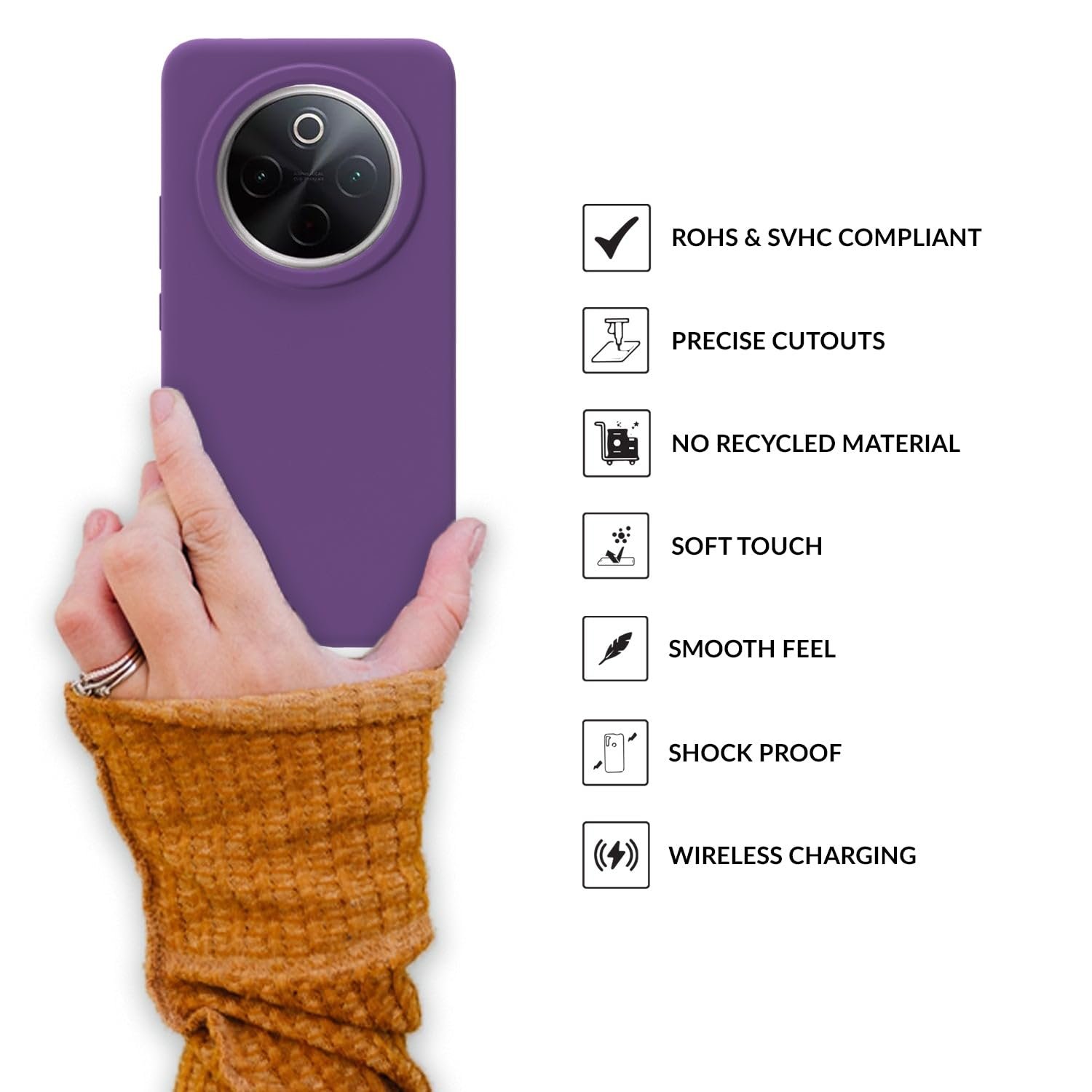 Enhance your iQOO Z10 5G with the Sprig Liquid Silicone Back Cover. Crafted from premium shock-proof liquid silicone, this case offers ultimate protection and a stylish look. It fits perfectly, keeping your device scratch-proof and safeguarded from damage. Ideal for outdoor activities, it withstands bumps and accidental falls. The cover is 100% compatible with standard chargers and headphones, and its thickened design provides complete button access and enhanced protection. With raised screen edges, your front display stays safe. Plus, the microfiber lining prevents scratches. Choose from a range of vibrant colors. Our environmentally sustainable case supports wireless charging, is easy to clean, and retains its color. Elevate your smartphone with Sprig’s Liquid Silicone Back Cover for iQOO Z10 5G.
