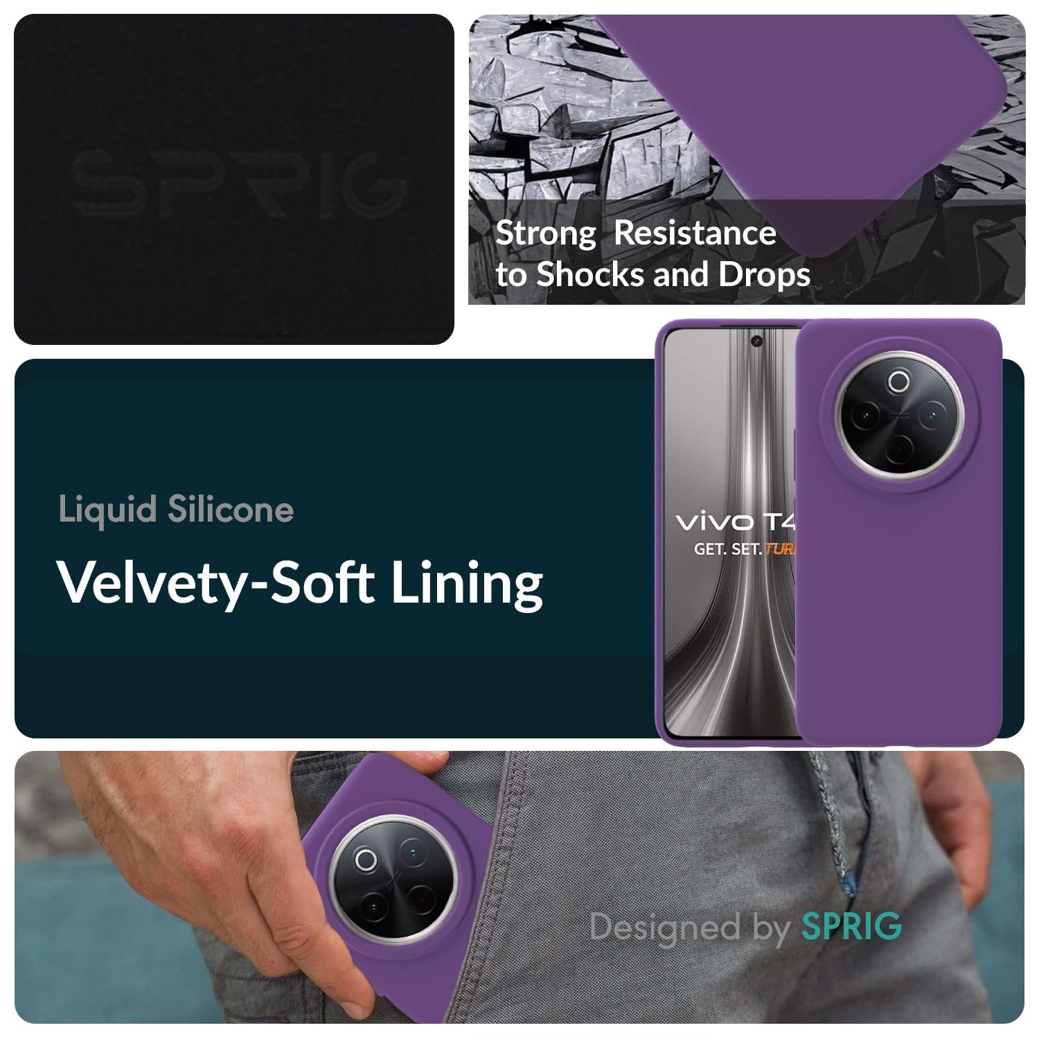 SPRIG Compatible with IQOO Z10 5G Phone Liquid Silicone Premium Back Cover Case Drop Tested Shock Proof for Boys and Girls with Camera Protection (Purple)
