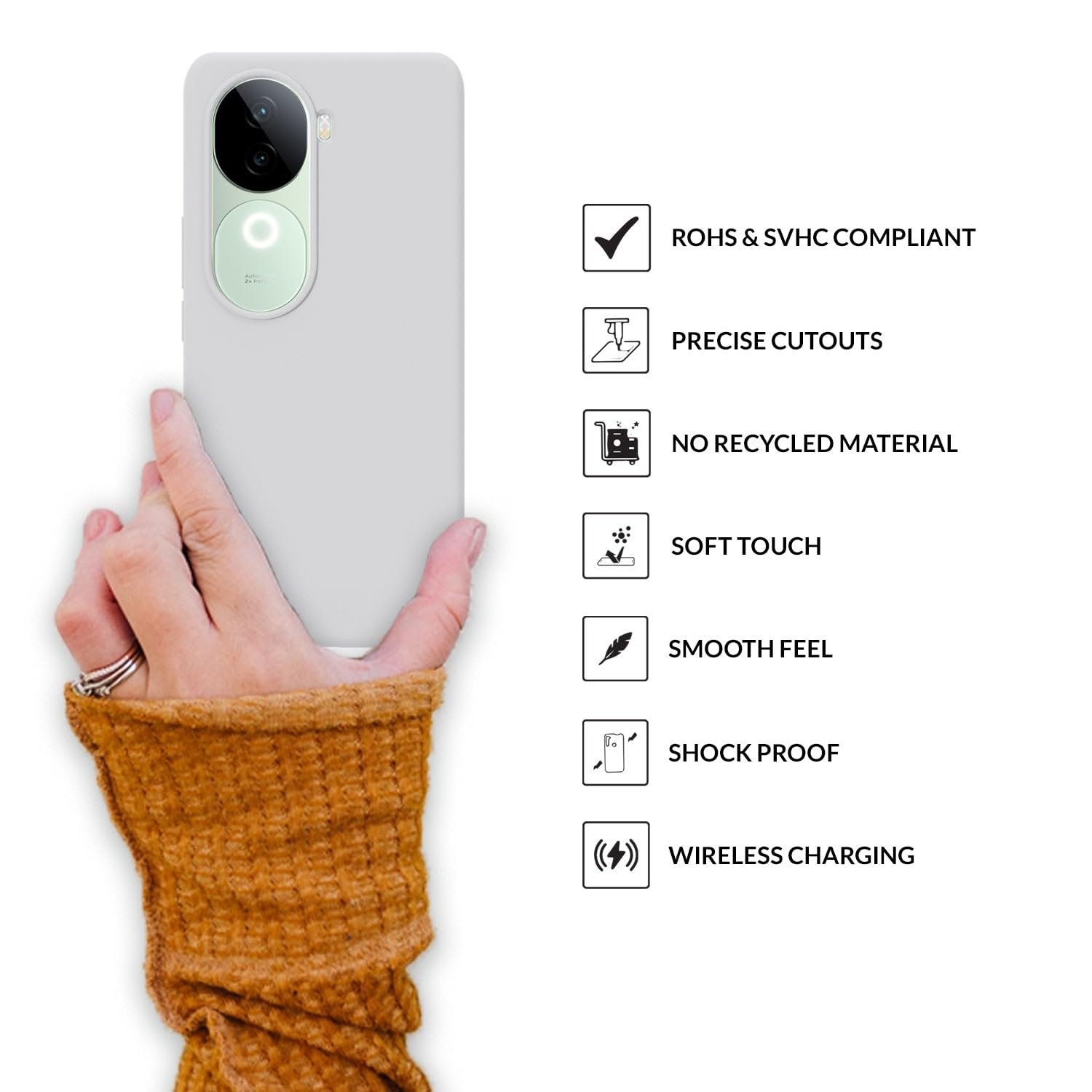 Enhance your iQOO Z9S 5G with the Sprig Liquid Silicone Back Cover. Crafted from premium shock-proof liquid silicone, this case offers ultimate protection and a stylish look. It fits perfectly, keeping your device scratch-proof and safeguarded from damage. Ideal for outdoor activities, it withstands bumps and accidental falls. The cover is 100% compatible with standard chargers and headphones, and its thickened design provides complete button access and enhanced protection. With raised screen edges, your front display stays safe. Plus, the microfiber lining prevents scratches. Choose from a range of vibrant colors. Our environmentally sustainable case supports wireless charging, is easy to clean, and retains its color. Elevate your smartphone with Sprig’s Liquid Silicone Back Cover for iQOO Z9S 5G.