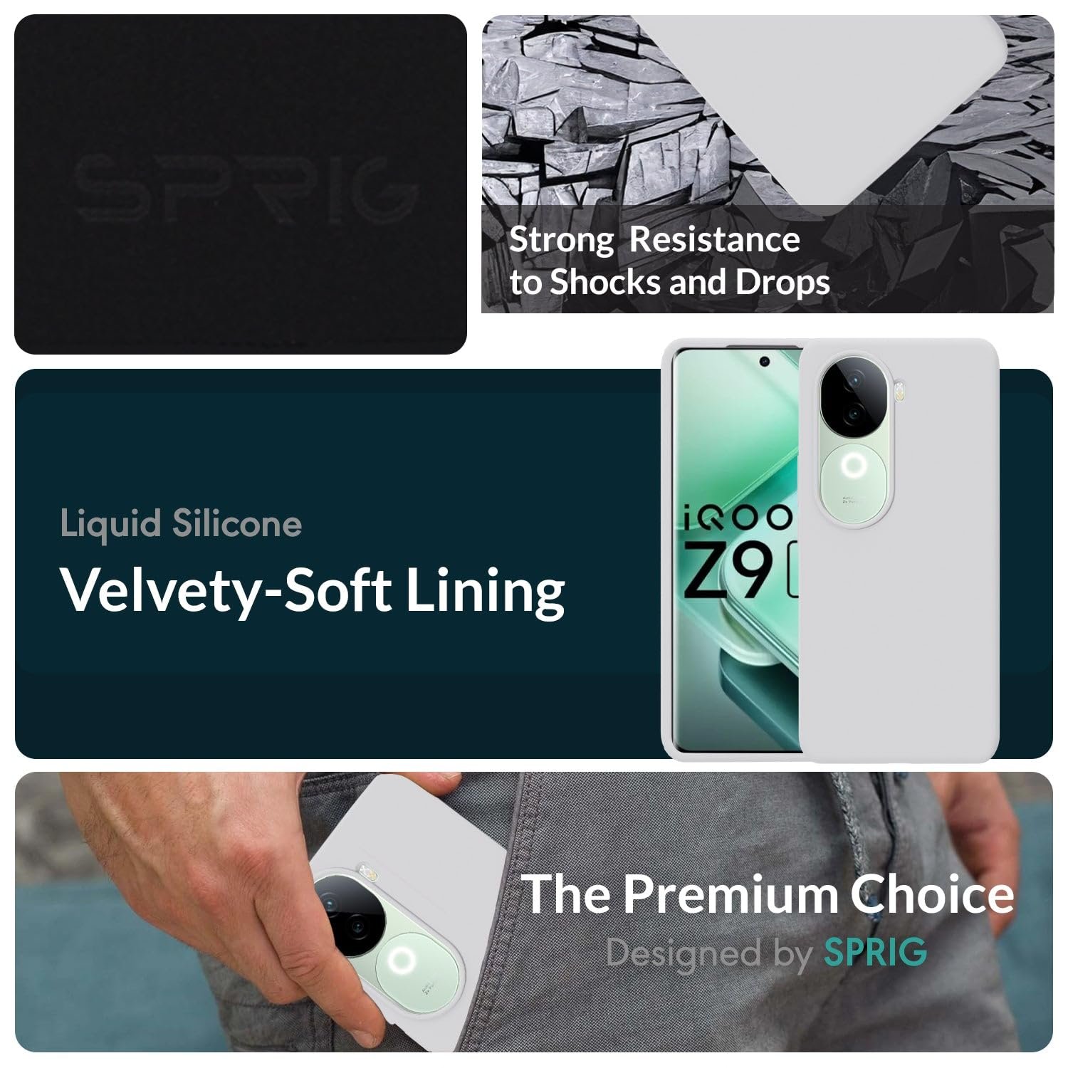 SPRIG Compatible with iQOO Z9s Premium SilkTone Back Cover Drop Tested Shock Proof Mobile Case for Men, Women, Boys and Girls with Camera Protection (White)