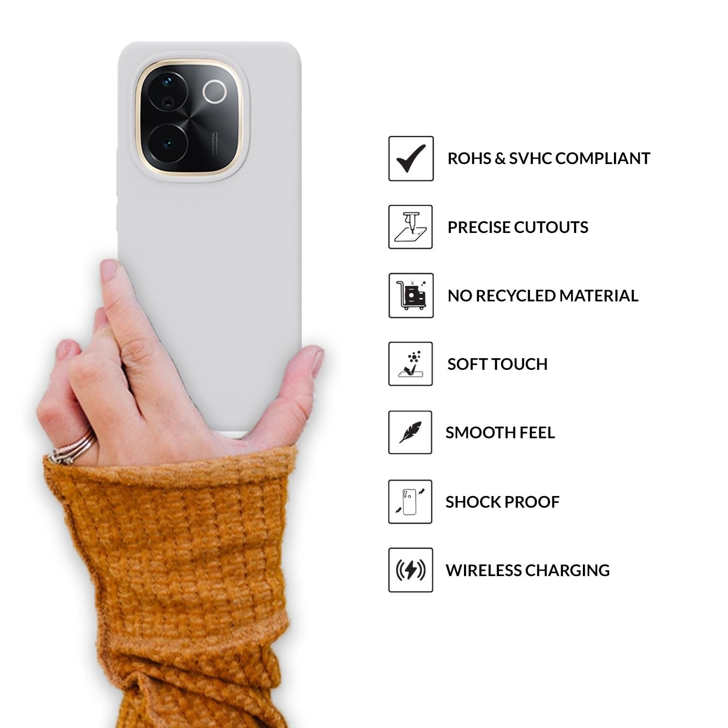 Enhance your iQOO Z9s Pro with the Sprig Liquid Silicone Back Cover. Crafted from premium shock-proof liquid silicone, this case offers ultimate protection and a stylish look. It fits perfectly, keeping your device scratch-proof and safeguarded from damage. Ideal for outdoor activities, it withstands bumps and accidental falls. The cover is 100% compatible with standard chargers and headphones, and its thickened design provides complete button access and enhanced protection. With raised screen edges, your front display stays safe. Plus, the microfiber lining prevents scratches. Choose from a range of vibrant colors. Our environmentally sustainable case supports wireless charging, is easy to clean, and retains its color. Elevate your smartphone with Sprig’s Liquid Silicone Back Cover for iQOO Z9s Pro.