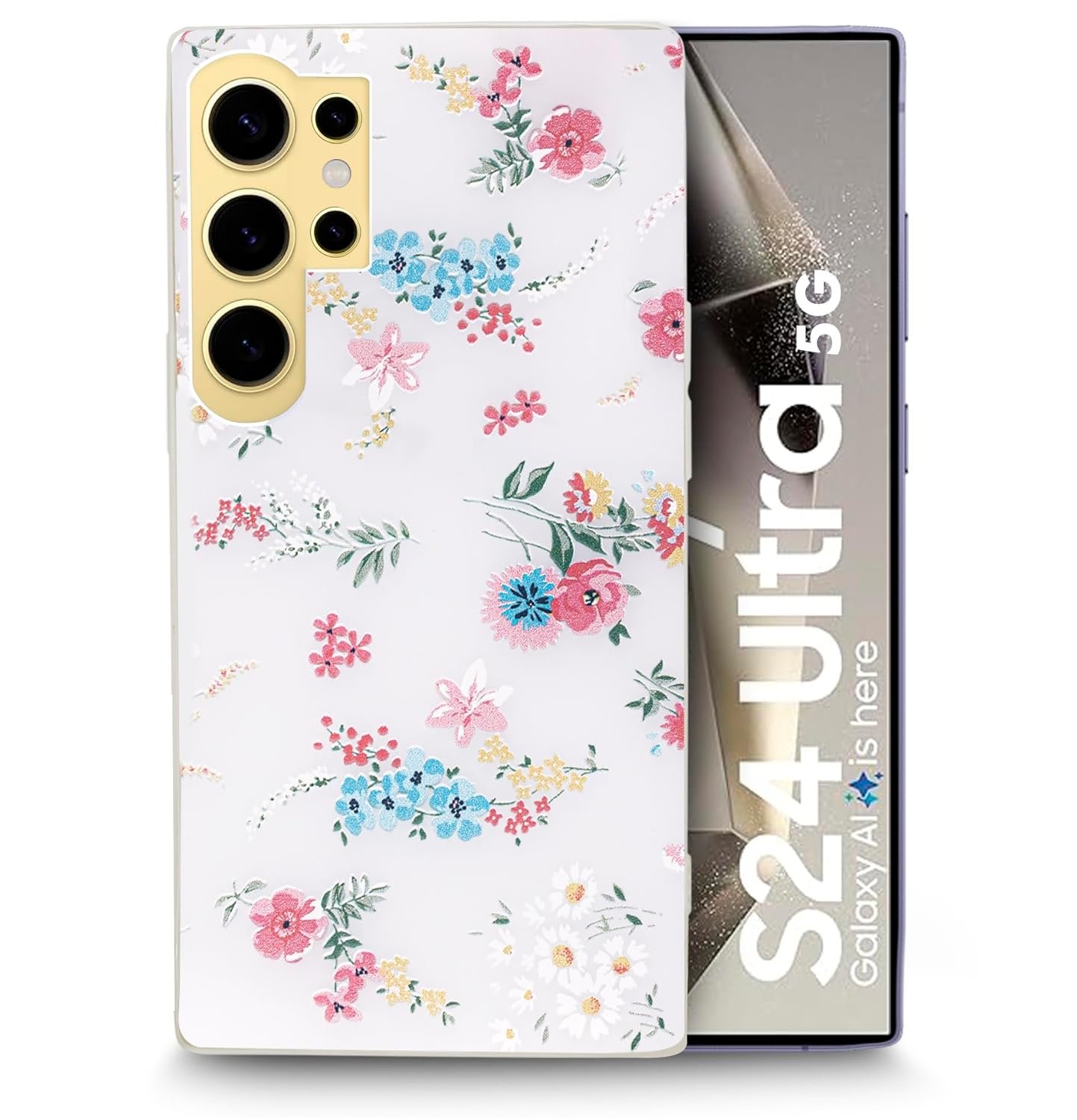 SQUIF Back Case for Samsung Galaxy S24 Ultra 5G Cover for Girls | Flower Printed (Floral, Milky White)