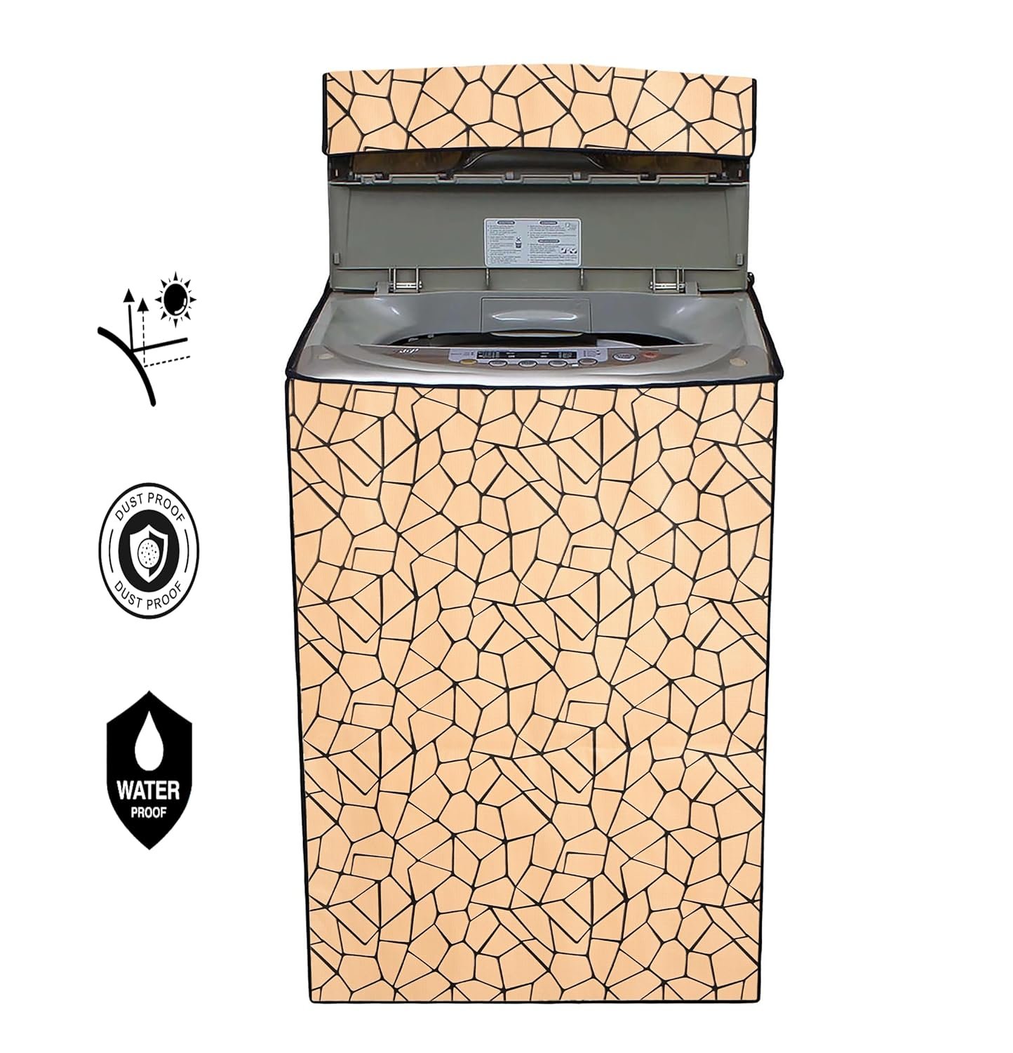 Star Weaves Washing Machine Cover For Top Load Whirlpool Whitemagic Royal 6.5Kg Model – Fully Automatic Waterproof & Dustproof Cover, Abstract Pattern Beige