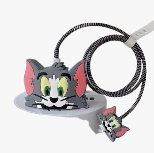 Stealodeal Silicone Protective Case for Apple 20W & 18W iPhone USB-C Power Adapter Charger and for USB Lightning Cable, 3D Cartoon Case for iPhone Charger 18W/20W Only (Tom and Jerry)