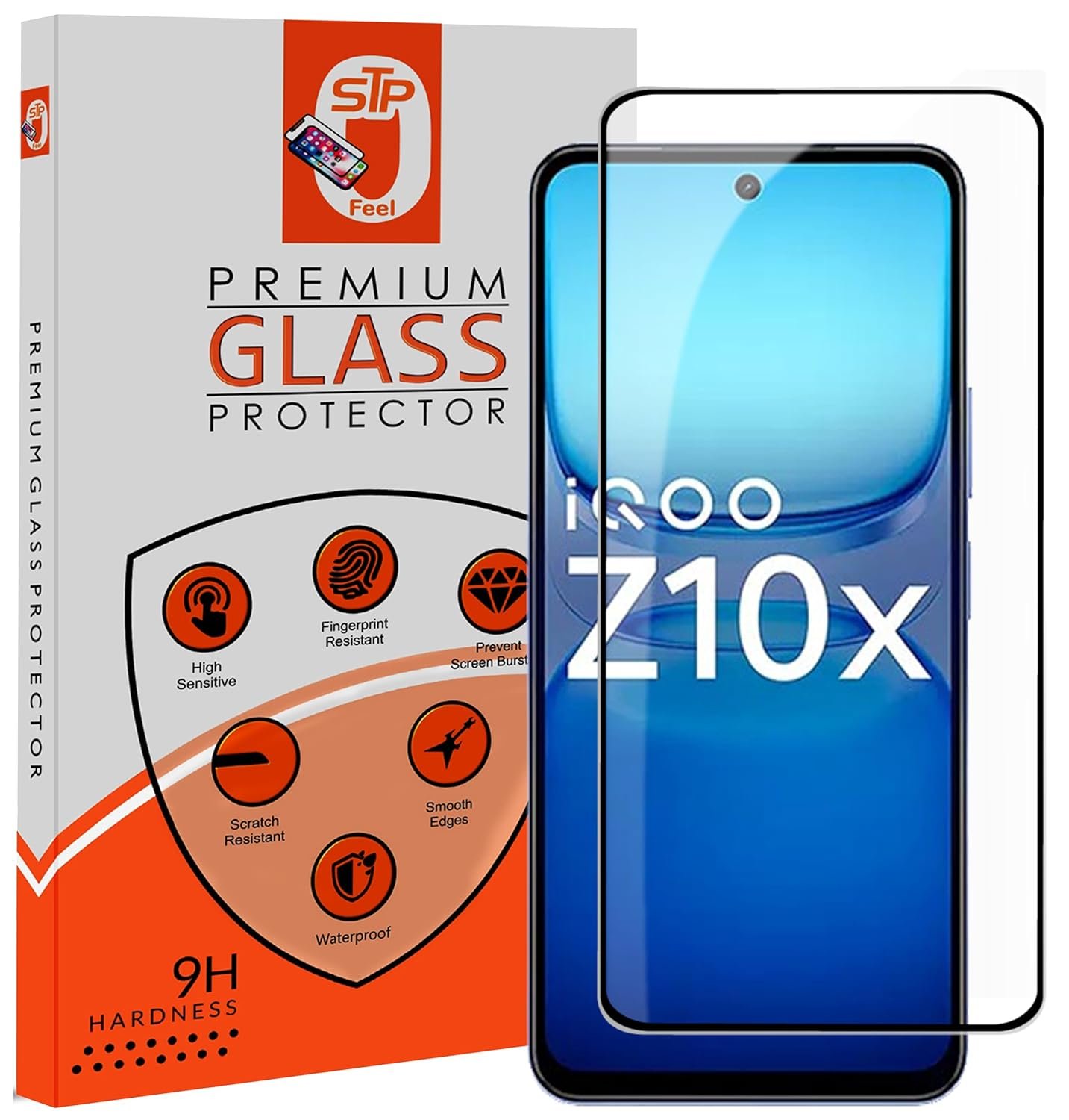 STP FEEL® Premium Tempered Glass Screen Protector Guard Compatible For IQOO Z10X 5G (6.72 Inch, Pack of 1) | Edge to Edge Coverage With Easy to installation kit for Smartphone