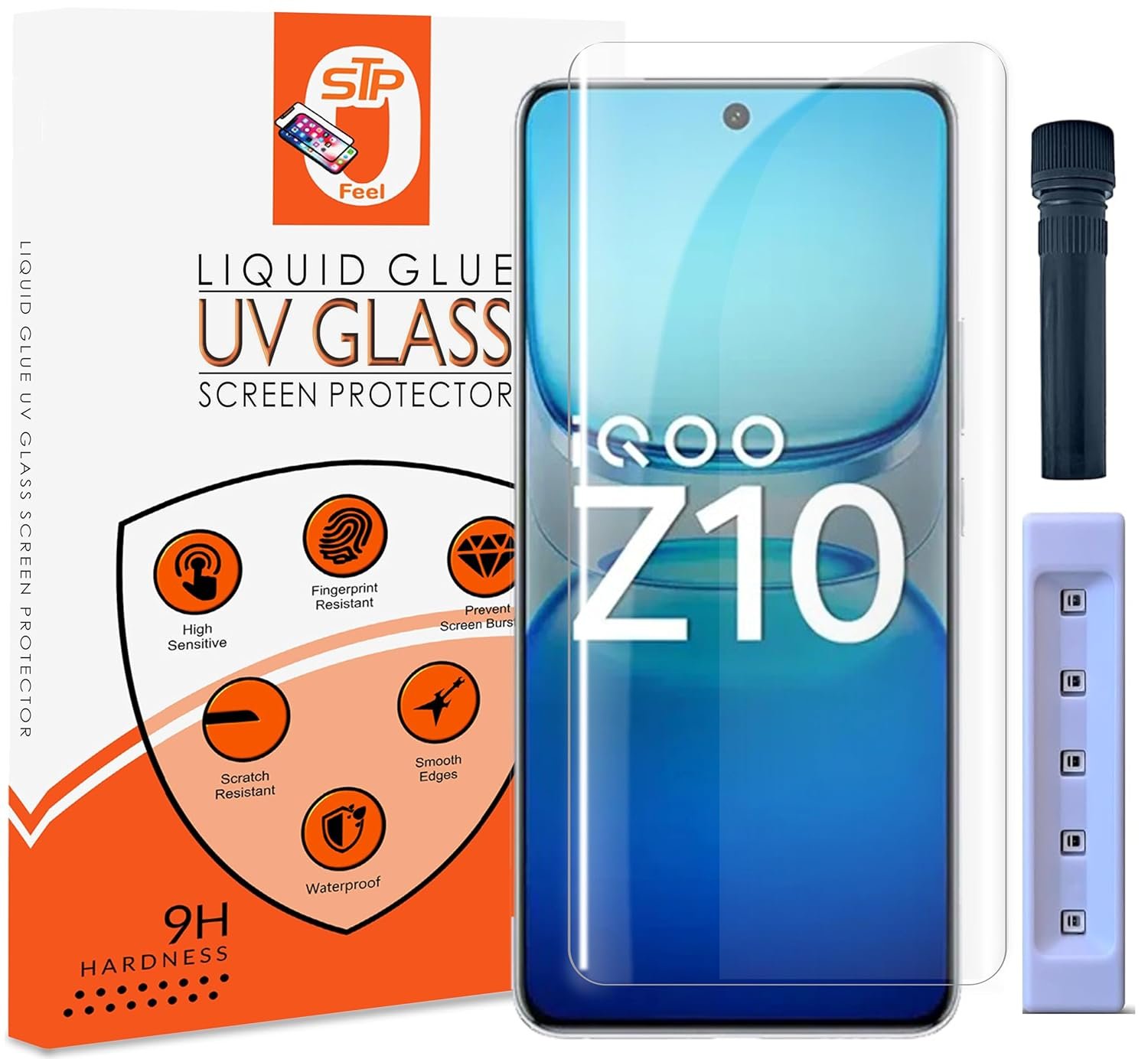 STP FEEL® UV Advanced Tempered Glass Screen Protector Guard Compatible For IQOO Z10 5G (6.77 Inch, Pack of 1) Full Adhesive UV Curved Case Friendly HD Clarity with easy installation kit for Smartphone
