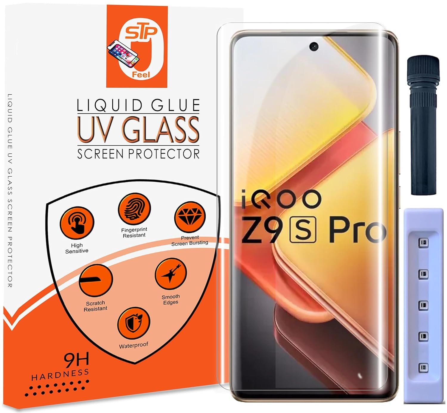 STP FEEL® UV Advanced Tempered Glass Screen Protector Guard Compatible For IQOO Z9s 5G / Z9s Pro 5G (6.78 Inch, Pack of 1) Full Adhesive UV Curved Case Friendly HD+ Clarity with easy installation kit
