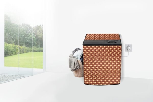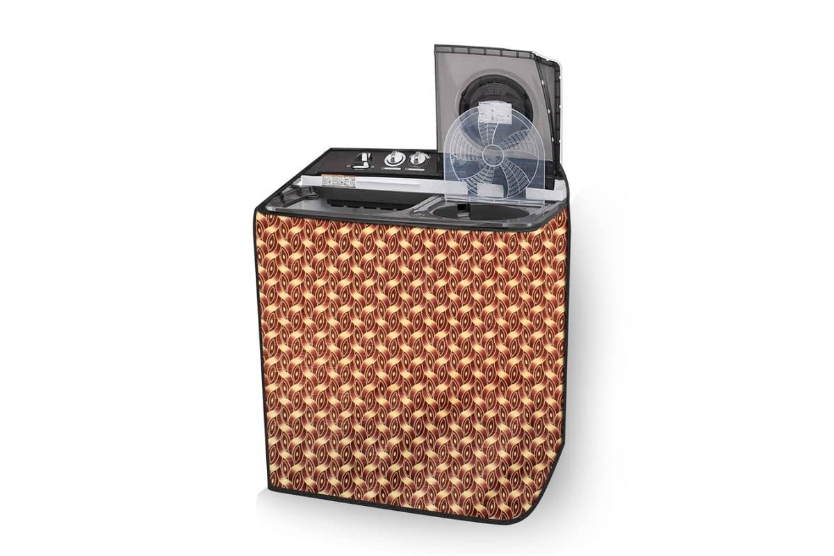 Stylista PVC Washing Machine Cover Compatible for LG 8.5 KG Semi-Automatic Top Loading P8535SRMZ, Interlocked Ropes Pattern Brown