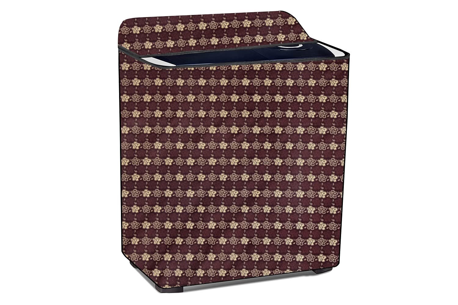 Stylista Washing Machine Cover Compatible for LG 8.5 KG Semi-Automatic Top Loading P8535SGMZ, Floral Pattern Brown