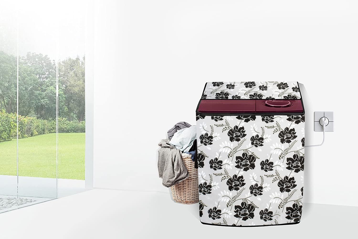 Stylista Washing Machine Cover Compatible for LG 8.5 KG Semi-Automatic Top Loading P8535SPMZ, Floral Pattern White