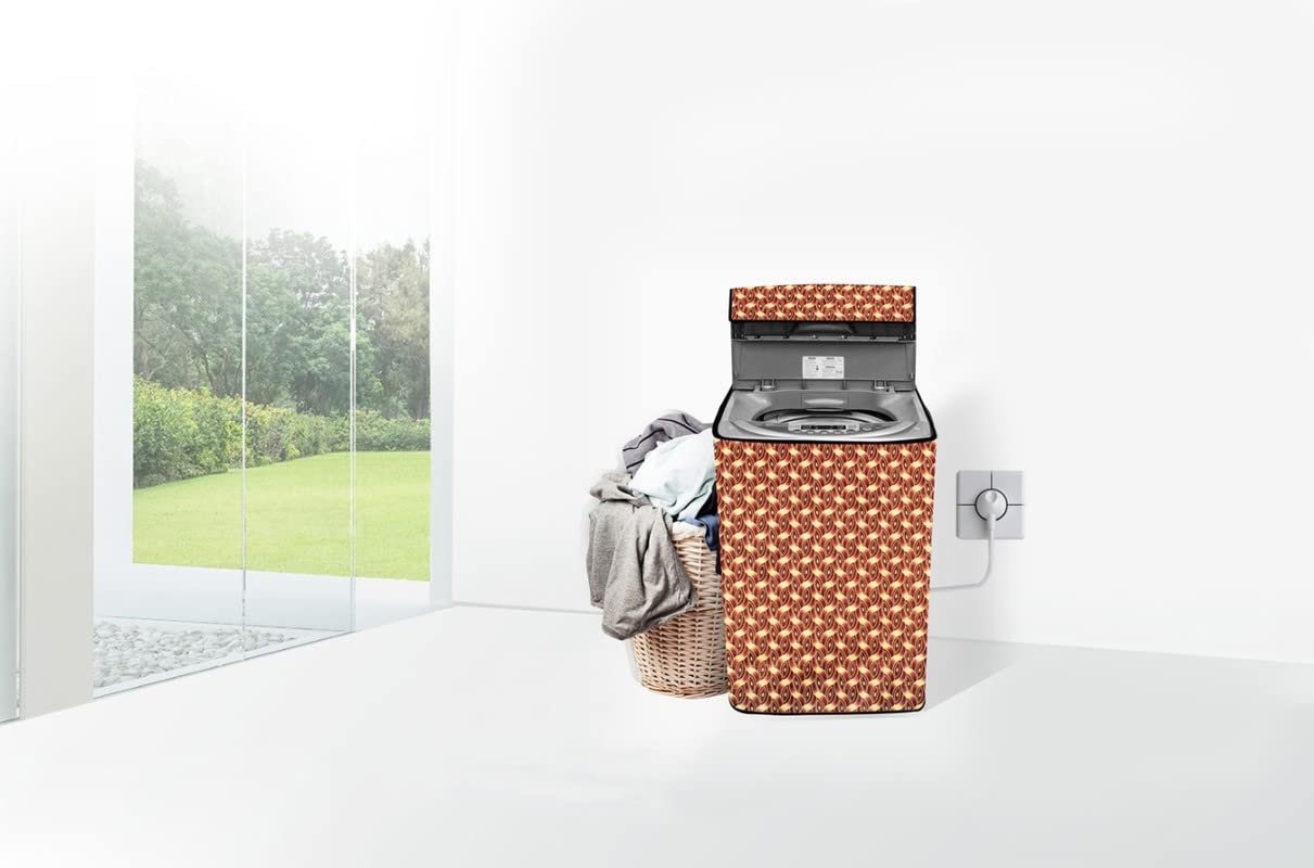 Stylista Washing Machine Cover Compatible for Whirlpool 6 Kg 5 Star Royal Fully-Automatic Top Loading Washing Machine WHITEMAGIC Royal Interlocked Ropes Pattern Brown