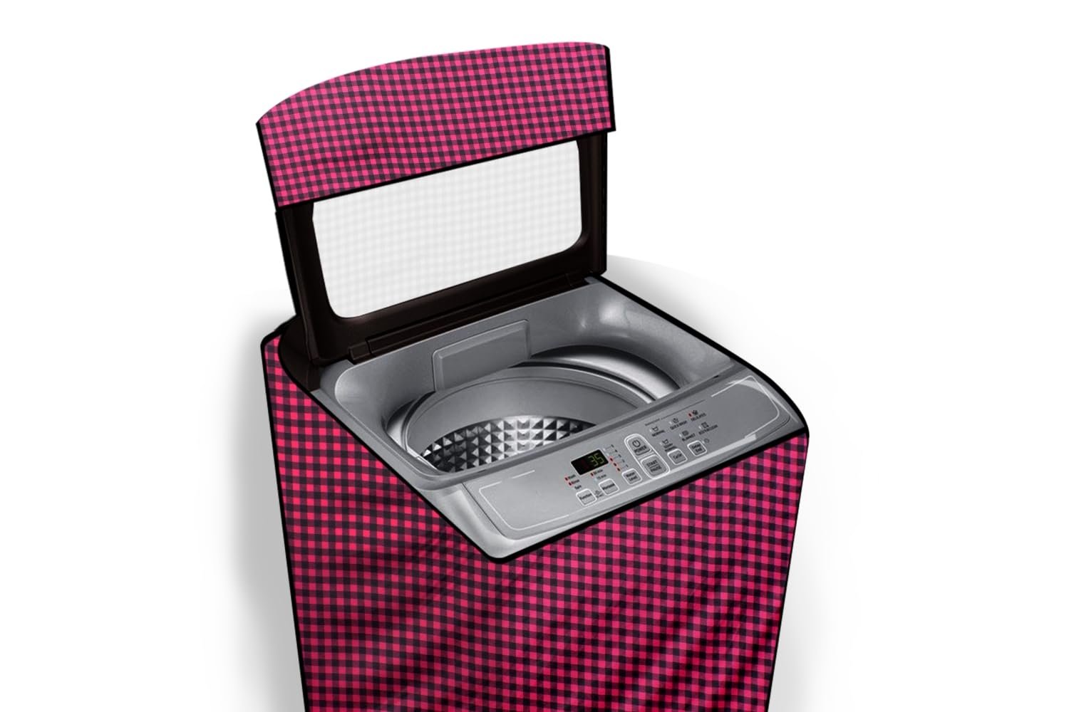 Stylista Waterproof and Dustproof Polyester Washing Machine Cover Compatible for Panasonic 6 Kg Fully-Automatic Top Loading NA-F60LF1HRB, Checkered Pattern Maroon