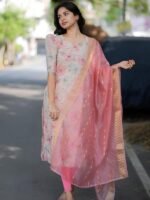 Sun Fashion And Lifestle presents chanderi floral printed straight puff sleeve kurta.silk jacuard butti printed dupatta
