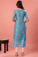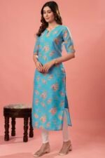 Sun Fashion And Lifestyle Women’s Chanderi Stitched Printed Long Kurti For Women