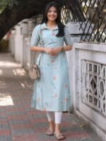 Sun Fashion And Lifestyle Women’s Chanderi Stitched Printed Straight Kurta (KT53_SkyBlue)