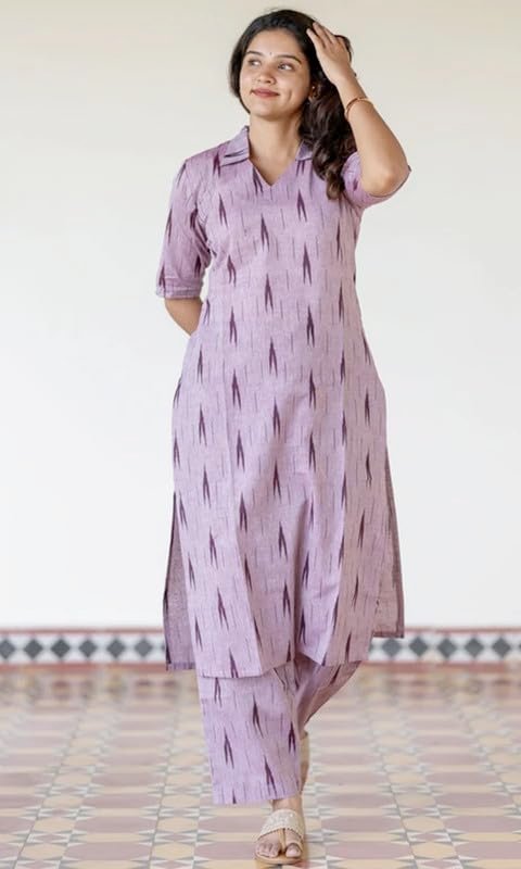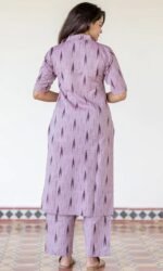 Sun Fashion And Lifestyle Women’s Cotton Blend Stitched Ikkat Print Calf Length Kurta Set
