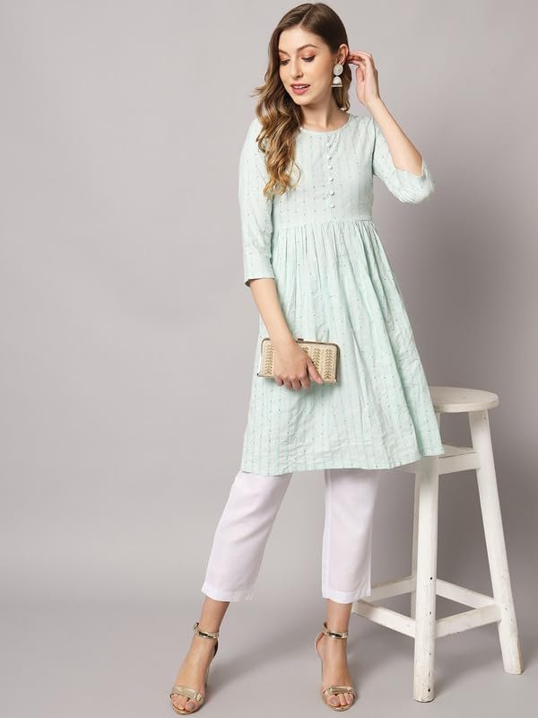 Introducing the elegant Short kurti by Sun Fashion and Lifestyle. Made from high-quality cotton blend fabric, this nyra style kurta offers a flattering fit with 3/4 sleeves. The knee lenght height and the cotton blend pant adds comfort and style. This set is perfect for day to day work and errands. Sold by Amazon, Sun Fashion and Lifestyle ensures exceptional quality and fashionable designs. Embrace the perfect blend of elegance and comfort with this exquisite kurta set, making a lasting impression wherever you go. Disclamer – Like most brands, our products are photographed professionally under controlled lighting. Colours tend to be perceived differently depending on factors such as shot angles, lighting, background tones and colour temperatures. As a result, prints and colours may vary10% -12%. Nevertheless, we strive to match the tones as close to the original product colours as possible.