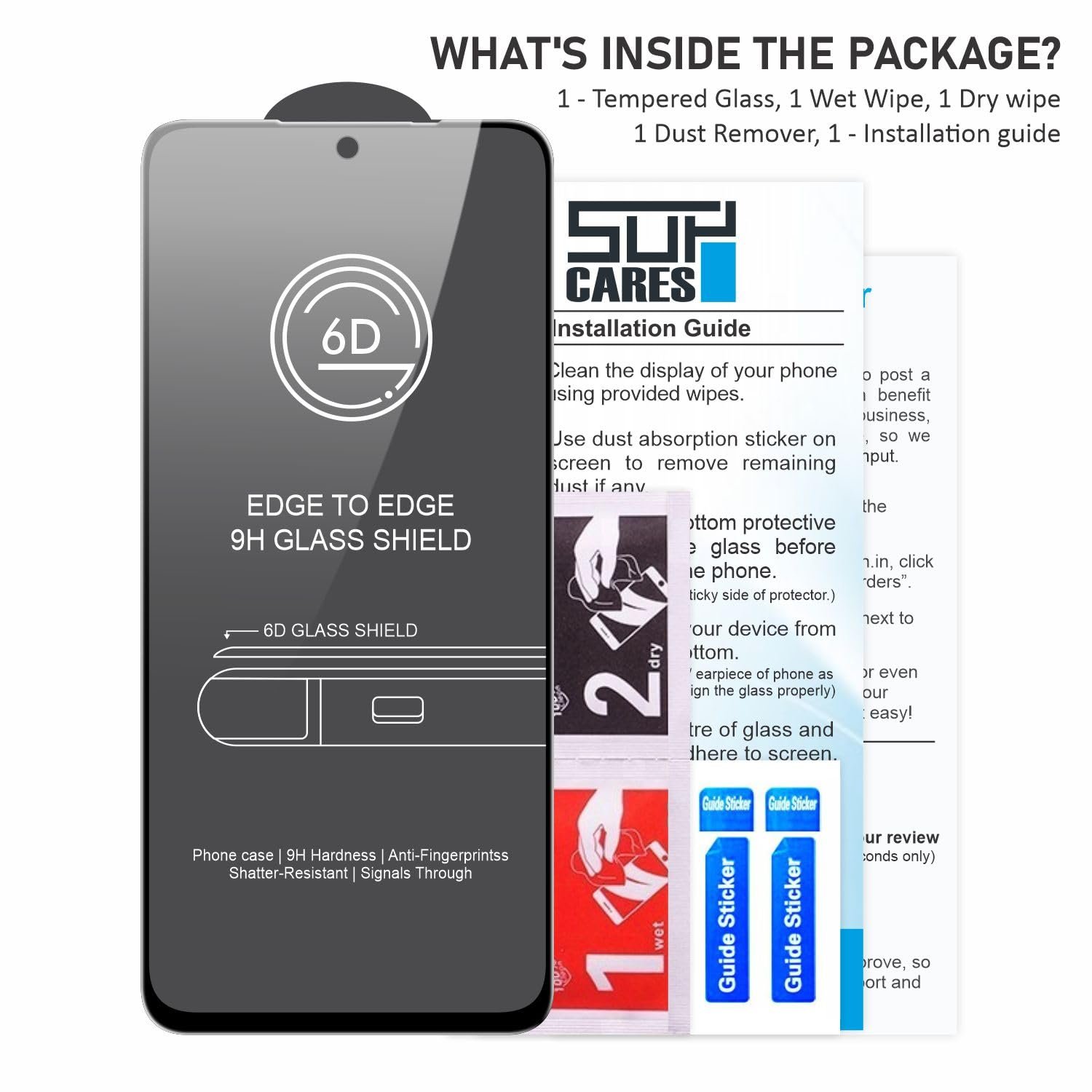 Compatible Device: This Tempered Glass is Perfectly compatible with Realme C65 and Realme Narzo N65 (6.67 Inch). Easy Installation: This is a edge to edge screen protector, Bubble free adhesive and easy to install. You can follow installation guidelines which printed on Installation guide. Box Includes: Tempered Glass, Wet wipe, Dry Wipes, Dust absorber sticker with installation guidelines.)