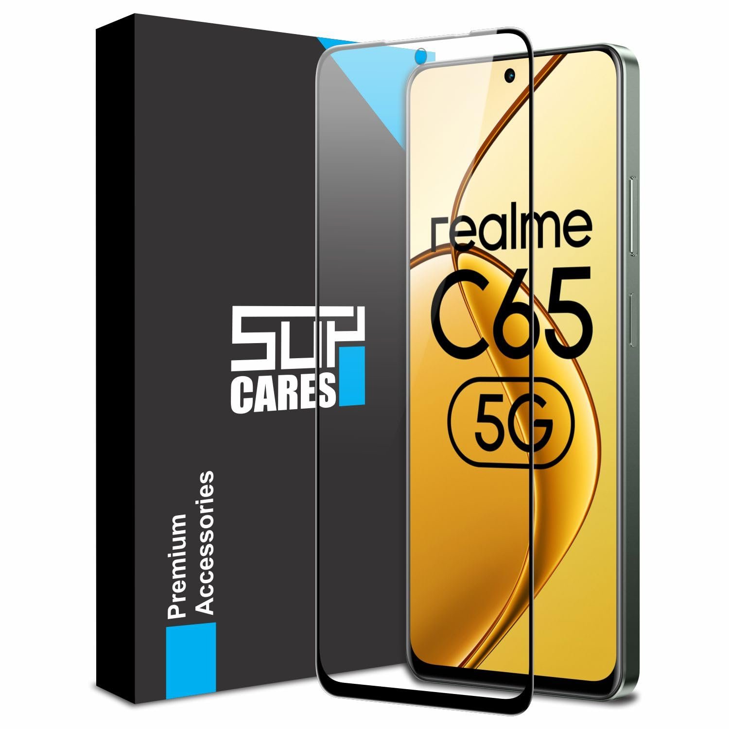 SupCares Military-Grade Gorilla Tempered Glass Screen Protector For Realme C65 and Realme Narzo N65 (6.67 Inch) With Installation Kit | Edge-To-Edge Protector Coverage | Black