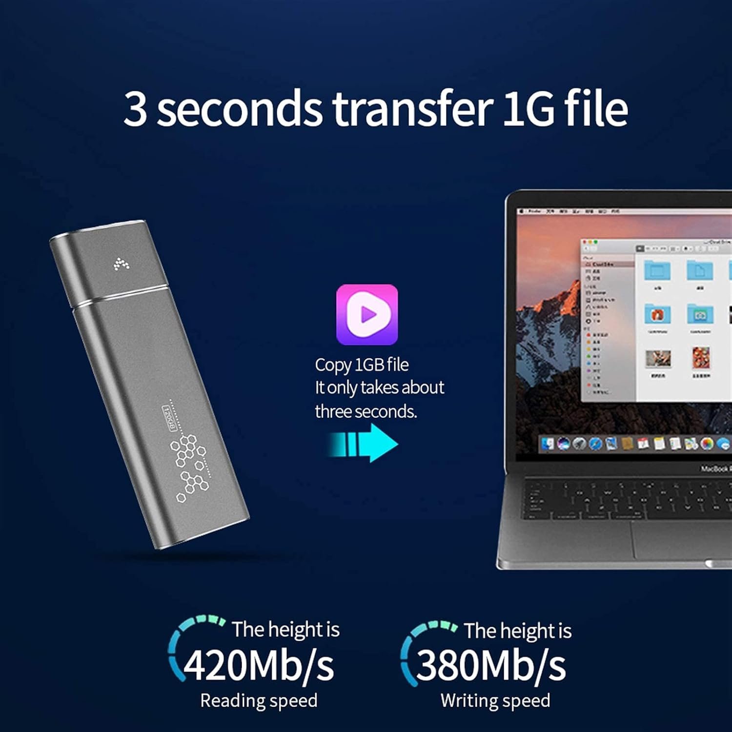 Up to 420mb/s transfer speed: For USB2.0, the speed of the device has been significantly improved. Reduce waiting time and save time and energy. The reading speed is 420mb/s, and the writing speed is 380mb/s.