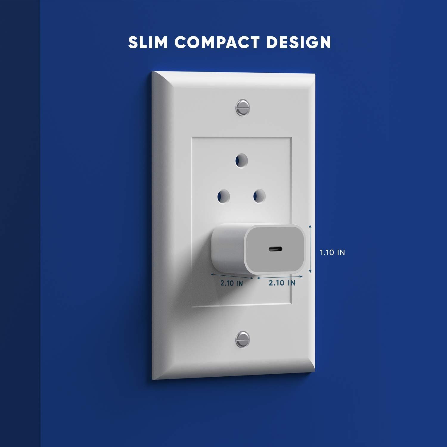 [20W USB C Power Adaptor] Equipped with USB-C Power Delivery port and 20W PD Fast Charger to provide full-speed charging (3x faster charging speed than normal chargers) for iPhone 12/12 Pro/12 Pro Max/12 Mini, iPhone 11/11 Pro/XS/XR/X, iPad Pro, Galaxy Note10 / Note 20 and other Samsung phones and tablets