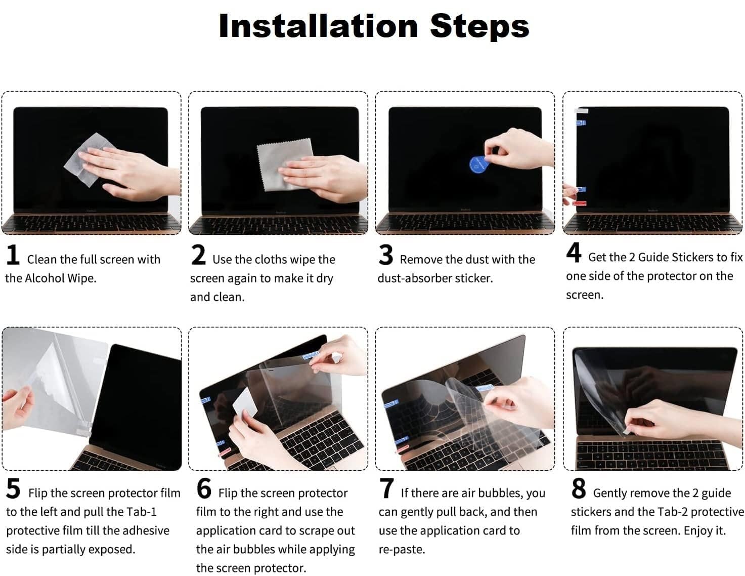 Clear and No Residue: The screen protector protects your screen and does not affect the appearance of your computer. It protects the MacBook screen from scratches and dust. The film is very easy to install and will leave no residue when removed, smooth surface.